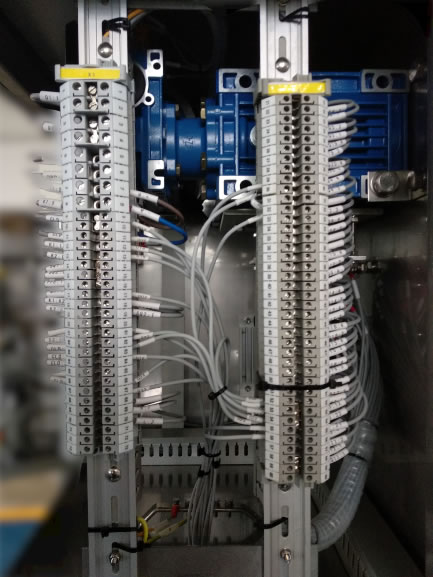 Incorpora bloque de contactos auxiliares (de serie 9A+9C), resistencia de caldeo, bombilla para iluminación y enchufe auxiliar.