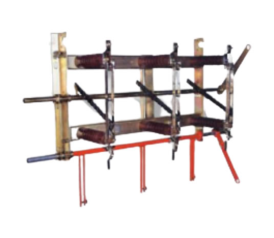 Bastidor de acero laminado en frío pintado (en 72,5 kV galvanizado), con aisladores de resina epoxi s/ normas UNE 21110 (en 72,5 kV de porcelana o polimérico) y cuchillas de cobre electrolítico protegido.
