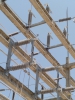 El bastidor es de perfil en U galvanizado en caliente, con aisladores de porcelana o poliméricos según normas UNE 21110 y las vías de corriente son de cobre electrolítico protegido.