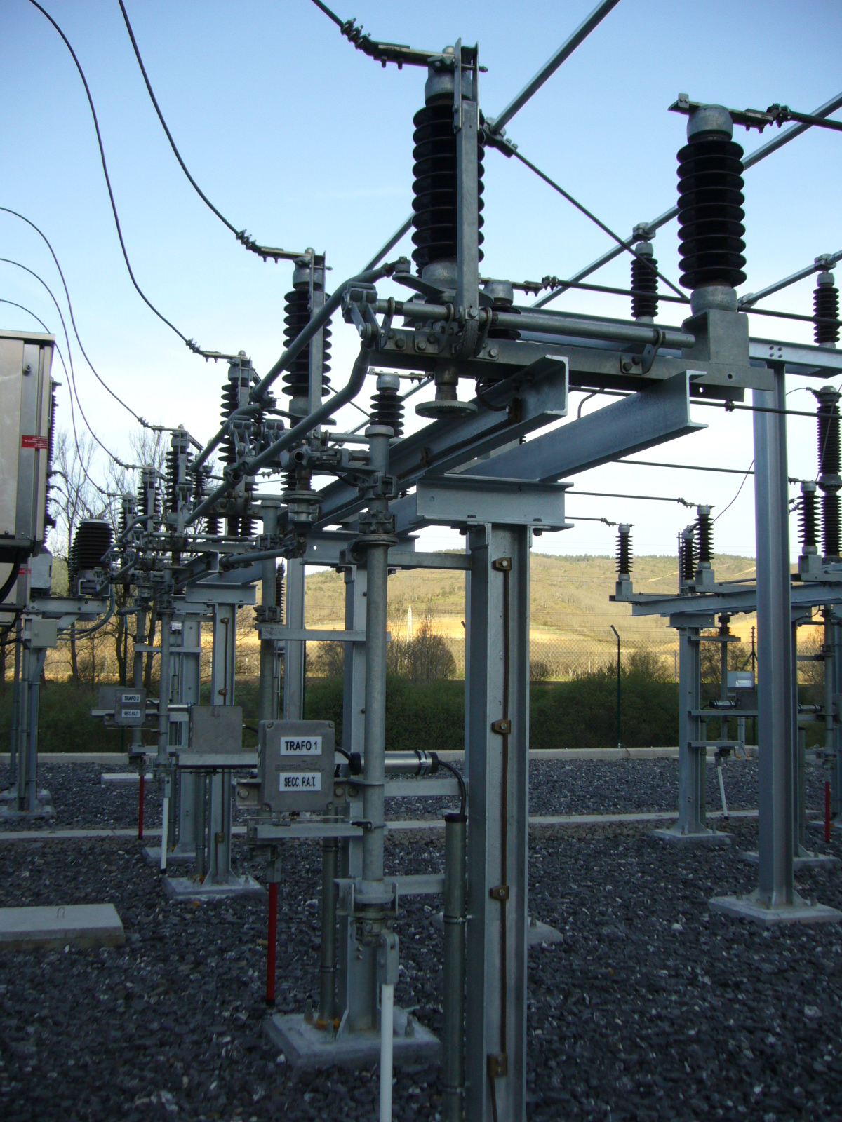 El bastidor es de perfil en U galvanizado en caliente, con aisladores de porcelana o poliméricos según normas UNE 21110 y las vías de corriente son de cobre electrolítico protegido.