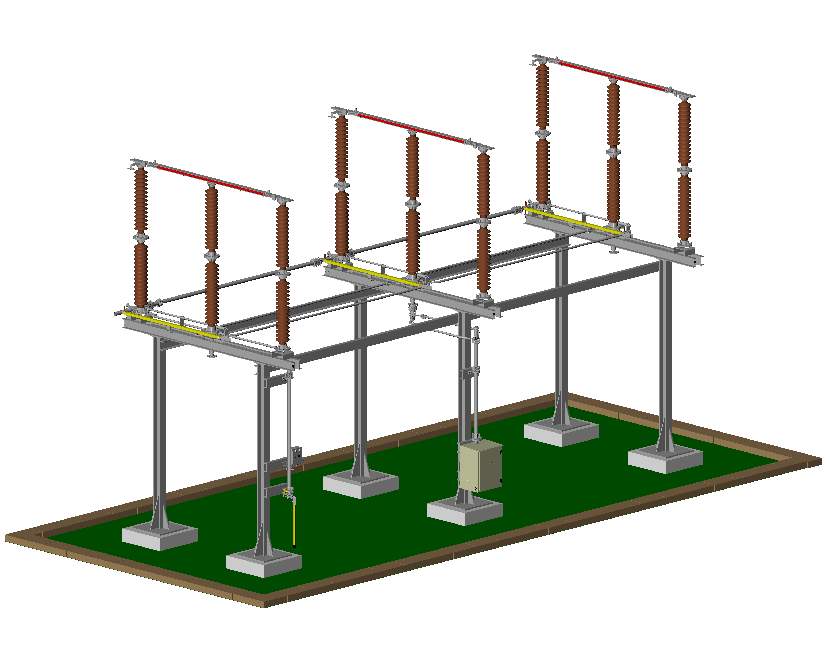 Seccionador giratorio de 3 columnas por polo, doble apertura lateral, para servicio en subestaciones, estaciones de transformación y líneas de transporte. Admite diferentes tipos de montaje, según las necesidades.
